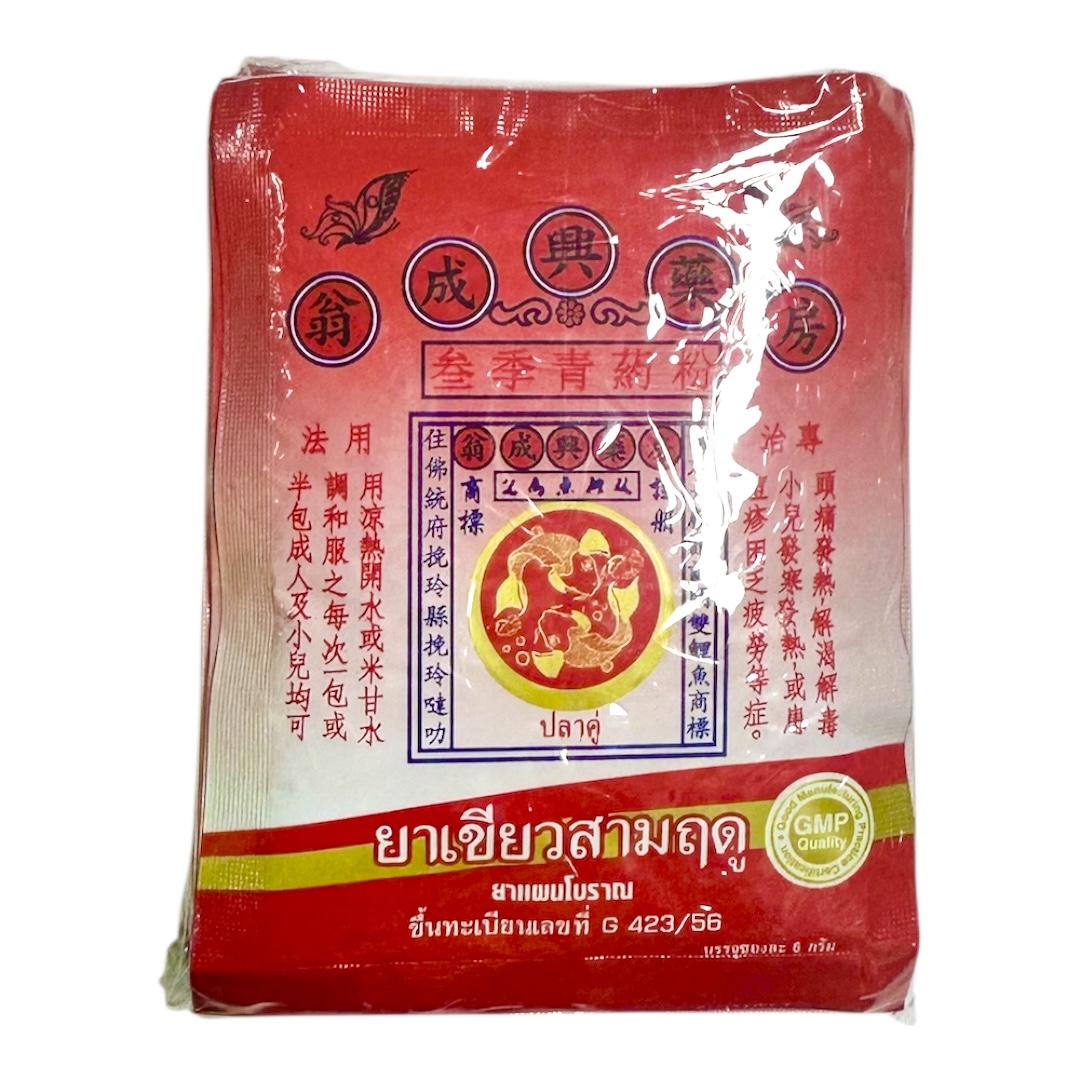 เขียวตราปลา ผง ซอง (สีแดง) 18.-