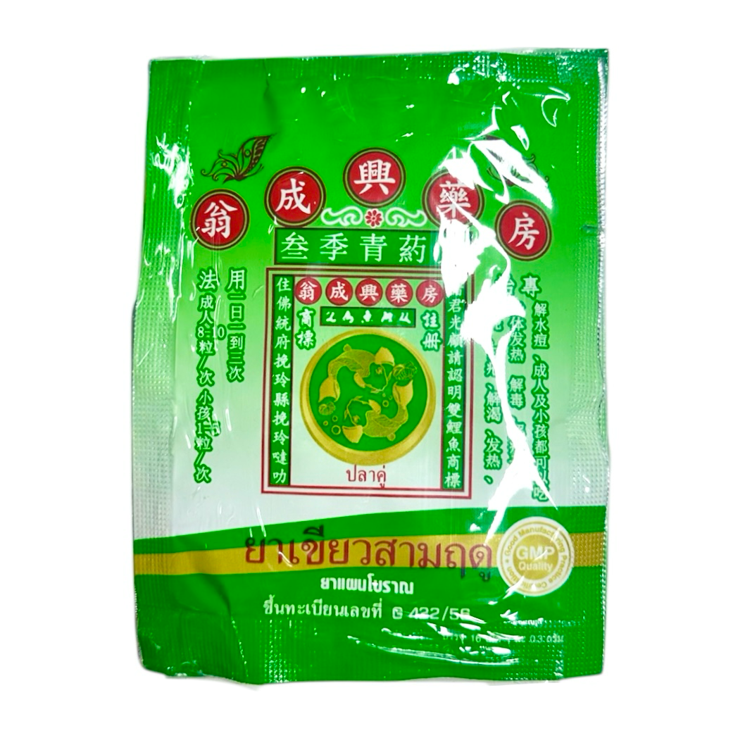 เขียวสามฤดู ตราปลาคู่**สูตรเข็มข้น10*10แคปซูล**แผง**